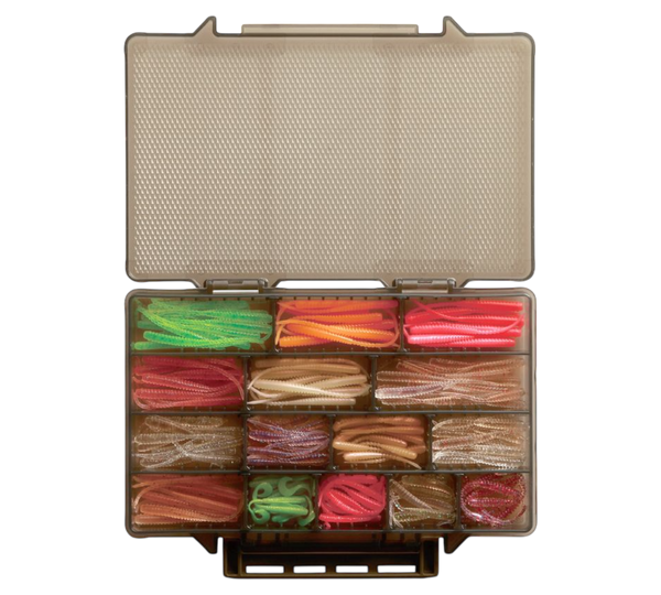Der MC Case 138P von Daiichiseiko ist eine Box zur Aufbewahrung von weichen und kleinen Ködern. Sie enthält einstellbare Trennwände und ergibt somit 3 bis 18 Fächer. Außerdem verfügt die Box über eine Pyramide, die im Deckel strukturiert ist, damit weiche Kunststoffe nicht haften bleiben und leichter aufgenommen werden können.