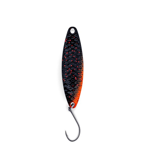 Sein charakteristisches „pendelndes“ Laufverhalten entfaltet eine magische Anziehungskraft auf Lachsforellen. Gleichzeitig überzeugt der Dozer durch seine Vielseitigkeit: Ob getwitcht, gejiggt, schnell oder langsam geführt – der 4-Gramm-Spoon mit seinem markanten Schuppenmuster liefert bei jedem Führungsstil herausragende Ergebnisse.