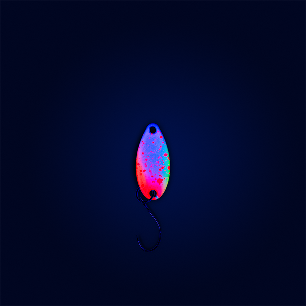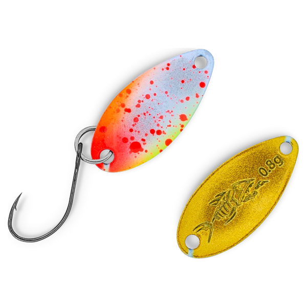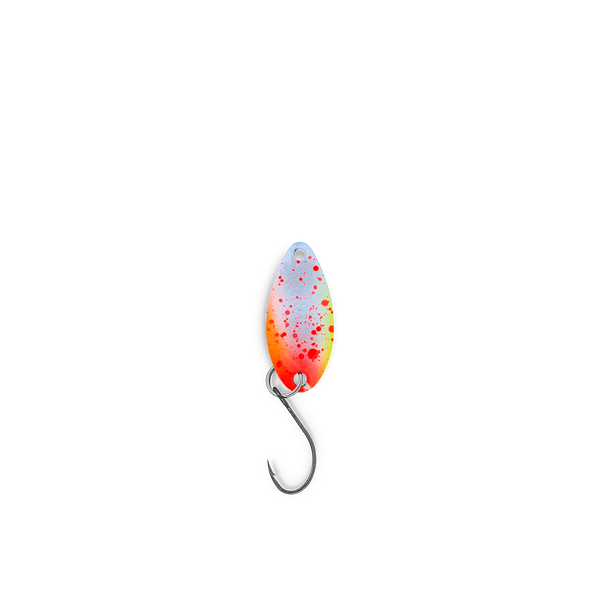 Mit lediglich 0,8 Gramm gehört der Eron light  zu unseren kleinsten Spoons. Aufgrund der kompakten Tropfenform bietet dieser Zwerg trotzdem eine gute Wurfperformance. Er ist prädestiniert für die obere  Wasserschicht, wo du ihn langsam führen und twitchen kannst. Wenn die Forellen im Teich bereits alles gesehen haben, kann dieser nicht alltägliche Mini-Spoon mit seinem abwechslungsreichen Lauf auf alle Fälle noch punkten.