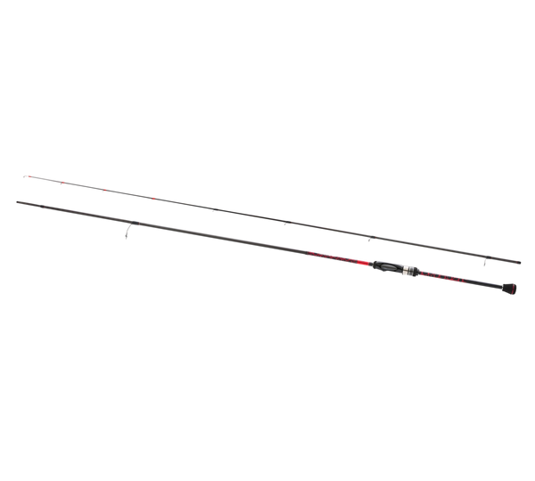 Die Rock'n Force II 702UL ist ein extrem leichtes und kraftvolles Meisterwerk. Mit einer Länge von 2,14 m und einem abgestimmten Wurfgewicht von 1,0 bis 8,5 gr hat sie ein Eigengewicht von nur 77 gr und präsentiert sich äußerst leistungsfähig. Das Rutenmodell konnte dank aufwendiger Ingenieursarbeit gegenüber dem Vorgänger nochmals um einiges verbessert werden. Die Modifizierung ermöglichte den Verzicht auf eine Solid-Tip, doch die extrem hohe Sensibilität blieb. Die Rock'n Force II 702UL ist für das ultraleichte Spinnfischen mit Soft- und Hardbaits auf Barsch und Forelle optimal geeignet. Der hochentwickelte NET-V III Carbon Blank, gepaart mit dem exklusiven Fuji Titanium SiC Ringsatz, ermöglicht Ihnen ein phänomenales Raubfischangeln. Höchste Sensibilität und beste Übertragung lassen Ihnen die zaghaftesten Bisse der Fische nicht mehr entgehen. Ihre Schnur gleitet nahezu reibungslos durch die Ringe, wodurch geniale Wurfweiten der Köder erzielt werden können. Die Rock'n Force II 702UL bringt ein leistungsfähiges Rückgrat mit und bändigt selbst kapitale Salmoniden mühelos. Mit diesem Modell ist das verführerische Präsentieren der unterschiedlichsten Soft- und Hardbaits, wie Spoons und Jiggs, spielend leicht. Das Design der Rute ist ästhetisch und modern. Die roten Highlights und der in schwarz gehaltene, ergonomisch geformte EVA-Griff sind optisch perfekt aufeinander abgestimmt und komplettieren sie.