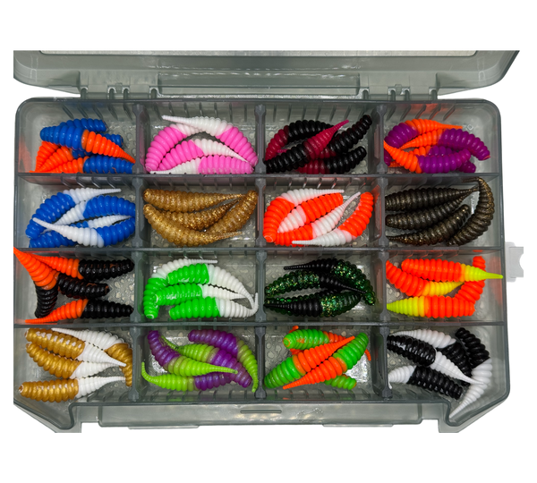 16 Fächer zu je 4stk. also 64 Köder