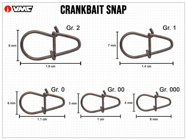 • Die VMC Crank Bait Snaps (3538) eignen sich besonders gut zum Fischen mit Hardbaits Wobbler und Spoon. Der weite Bogen ermöglicht ein besseres Spiel des Crankbaits oder Twitchbaits.