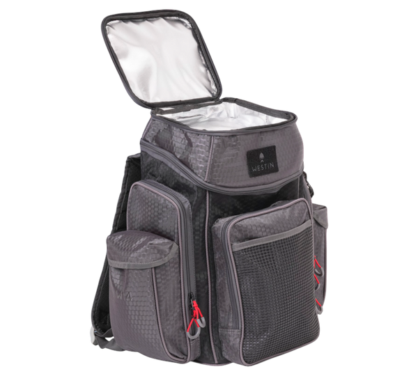 Der W4 Backpack Plus schluckt alles, was du für einen Tag am Wasser brauchst. Das Kühlfach auf der Kopfseite hält dein Essen frisch. Diese Tasche kommt mit Westin Tackle Boxen, mehrere Taschen, Klettverschluss Werkzeugriemen und starken Reißverschlüssen. Die verstellbaren und gepolsterten Gurte machen das Tragen bequem.